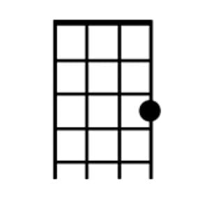 If this doesn’t make sense, take your ukulele and place a finger on the third fret of the top A string (the one furthest from your nose). This is a C chord. If you compare this to the chord box, it should begin to make sense.