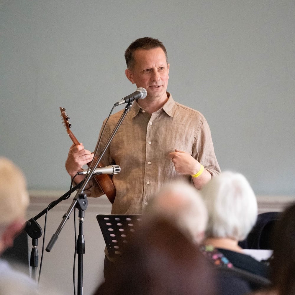 I give solo performances at music festivals and also for smaller ukulele clubs and groups. In my performances I try to have fun with an audience, with plenty of laughs and a selection of old and new tunes. And of course my nose flute always makes an appearance (non-negotiable).