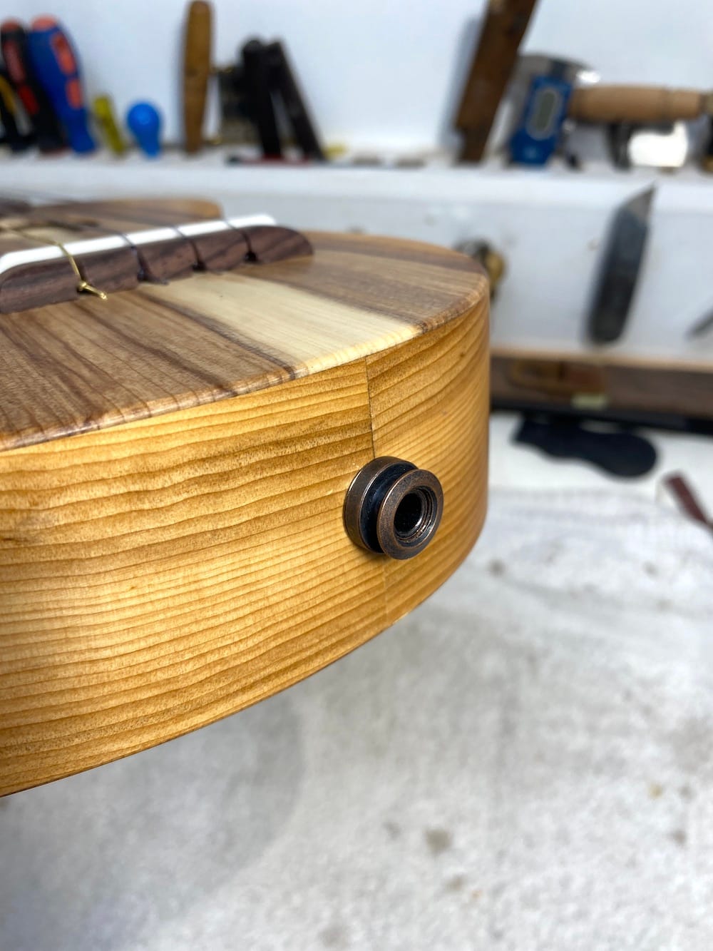 This uke has been fitted with a Tom Ziegenspeck 'Uke-Up' pickup so you can crank it up to 11.